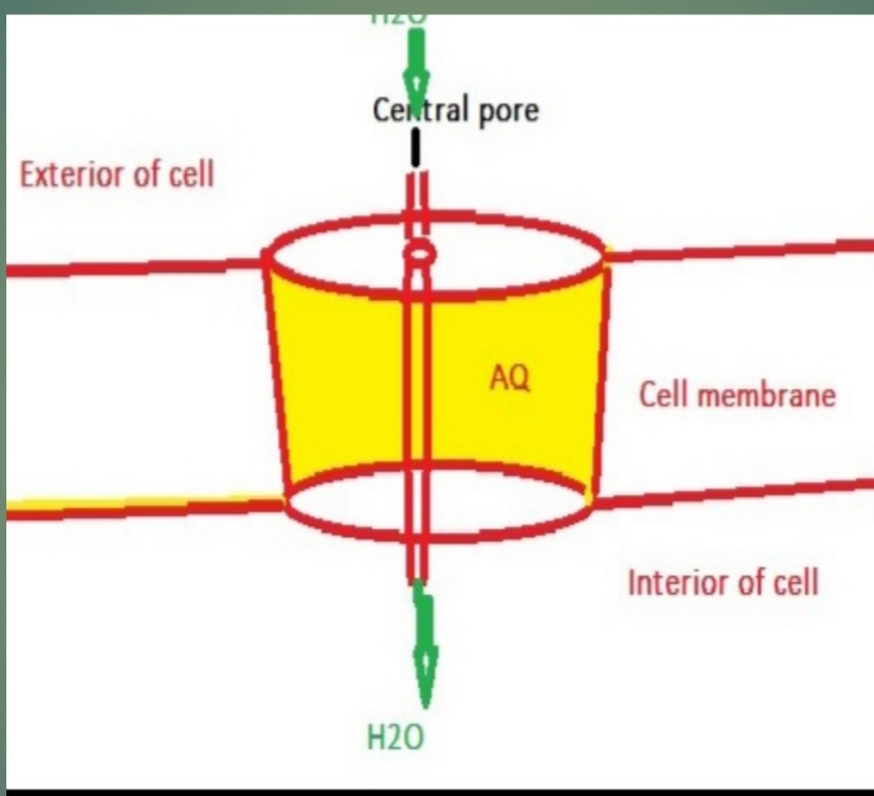 Aquaporin in the cell membrane. Aquaporin has a central pore through which water passes.ADH regulated the size of the pore.