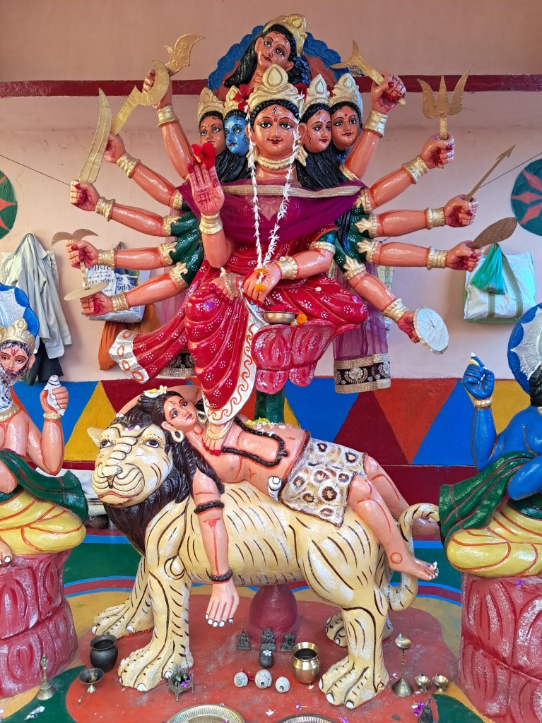 नवरात्रि के पहले दिन कलश स्थापित कर के पूजा शुरु किया जाता है ,बाद में माँ की मूर्ति स्थापित किया जाता है | कुछ लोग घर पर कलश स्थापित कर के पूजा शुरु करते है | पूजा पंडाल में माँ की मूर्ति स्थापित किया जाता है,छठा दिन भक्तों के लिए पंडाल खोला जाता है | भक्तों की भीड़ माँ के दर्शन के लिए उमड़ परती है | दसवें दिन मूर्ति को प्रवाहित किया जाता है |